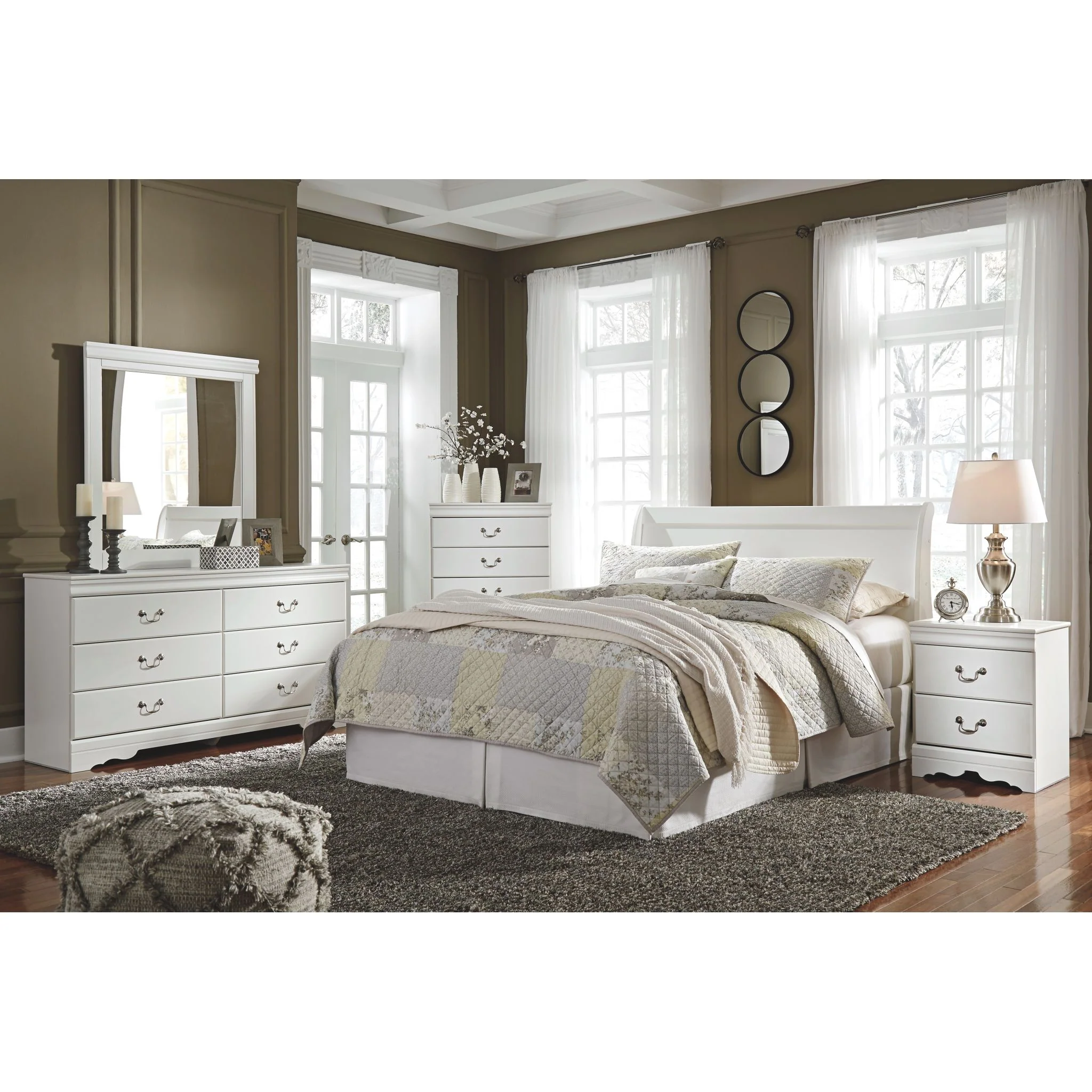 The Anarasia dresser and mirror set's crisp cottage white gives traditional Louis Philippe profiling a delightful style awakening. The look is timeless. The feel? Right at home. Six smooth-gliding drawers with antiqued bail pulls beautifully accommodate.