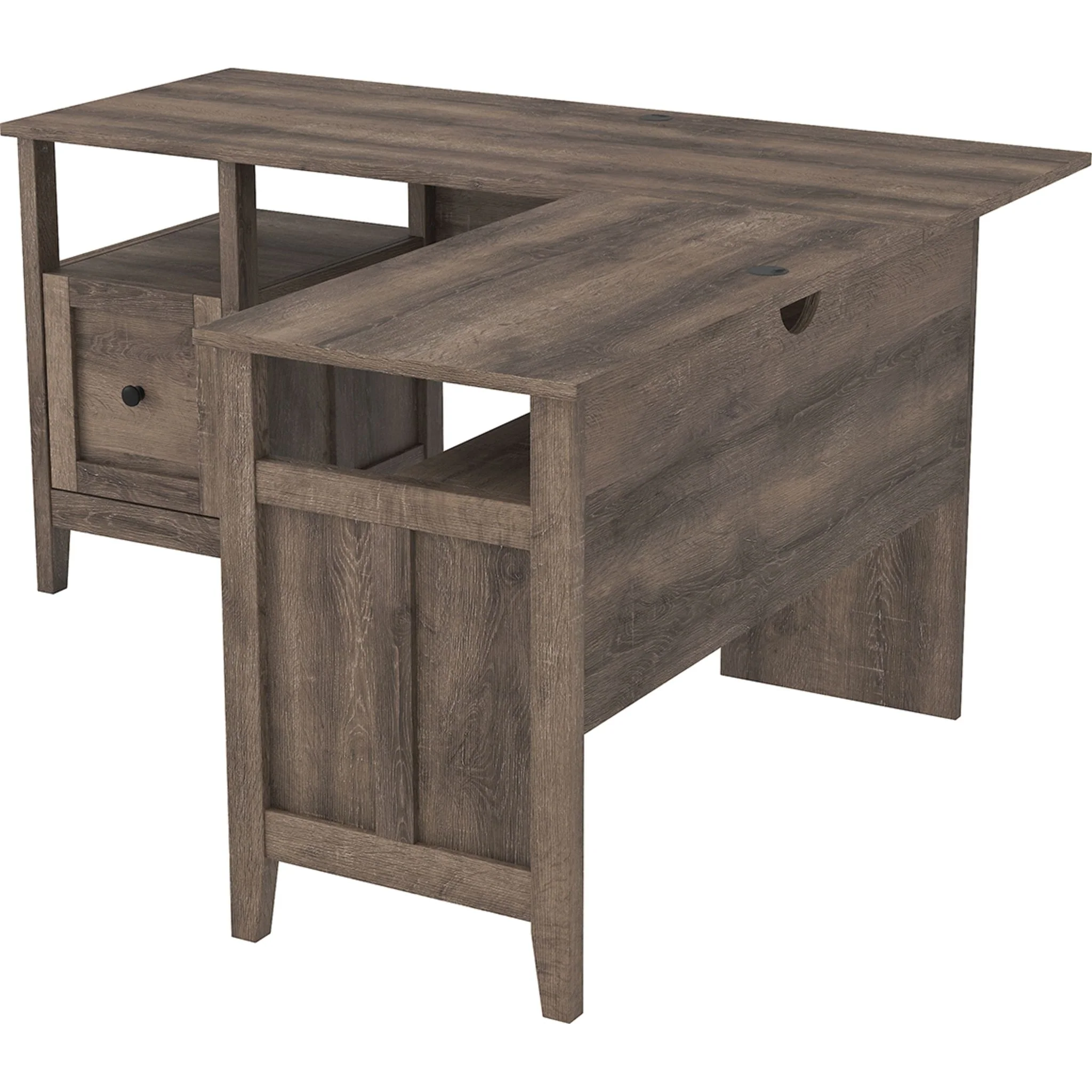 Clean-lined and contemporary—but far from stark—the Arlenbry L-desk with hutch is a fresh style awakening. Sleek scale makes it a natural fit for smaller spaces. Effortlessly combining modern farmhouse design with urban attitude, the replicated oak grain plays perfectly with the chic yet earthy aesthetic.