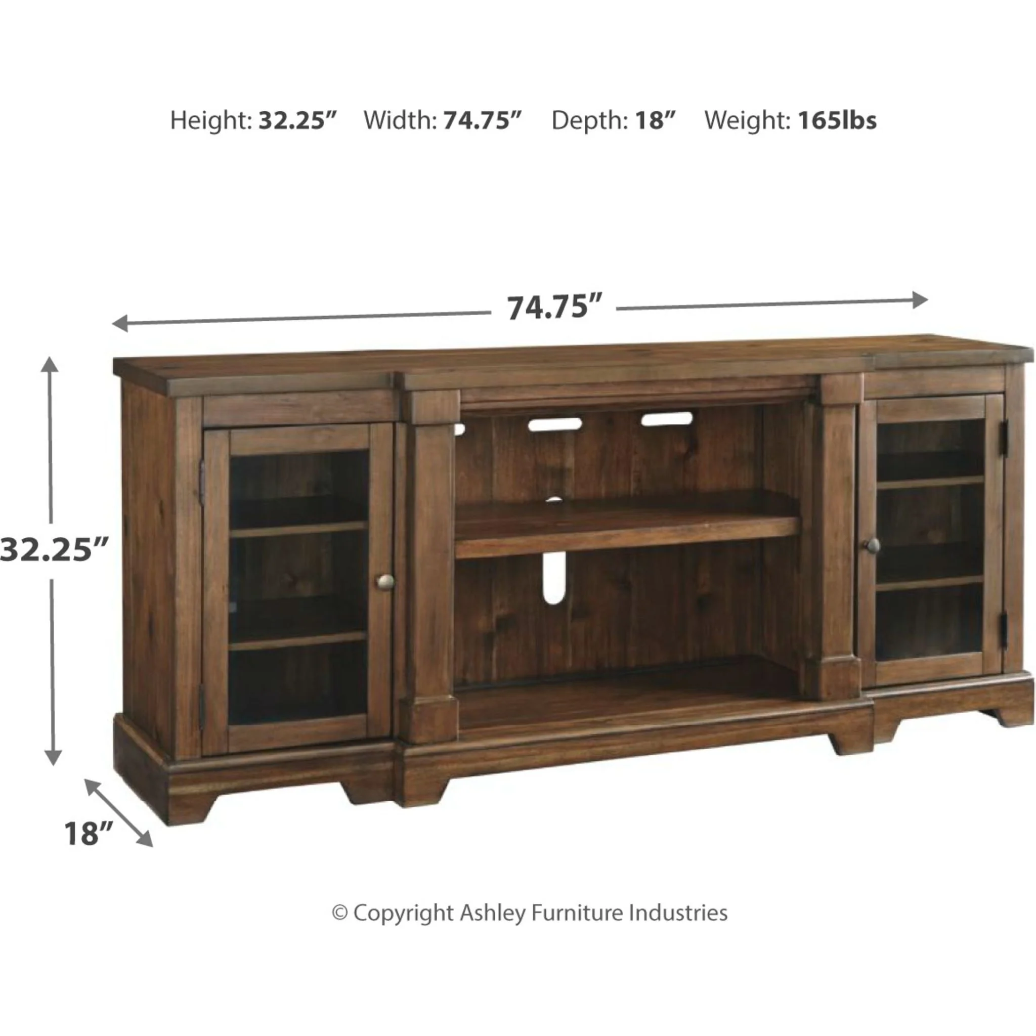 Sporting a clean-lined, hearty profile and complex chestnut-tone finish, this TV stand with optional fireplace brings home a richly rustic style that’s warm and welcoming. Its large-scale design easily accommodates a 75 TV. If you really want to turn on the romance, opt for the optional electric fireplace insert (sold separately).