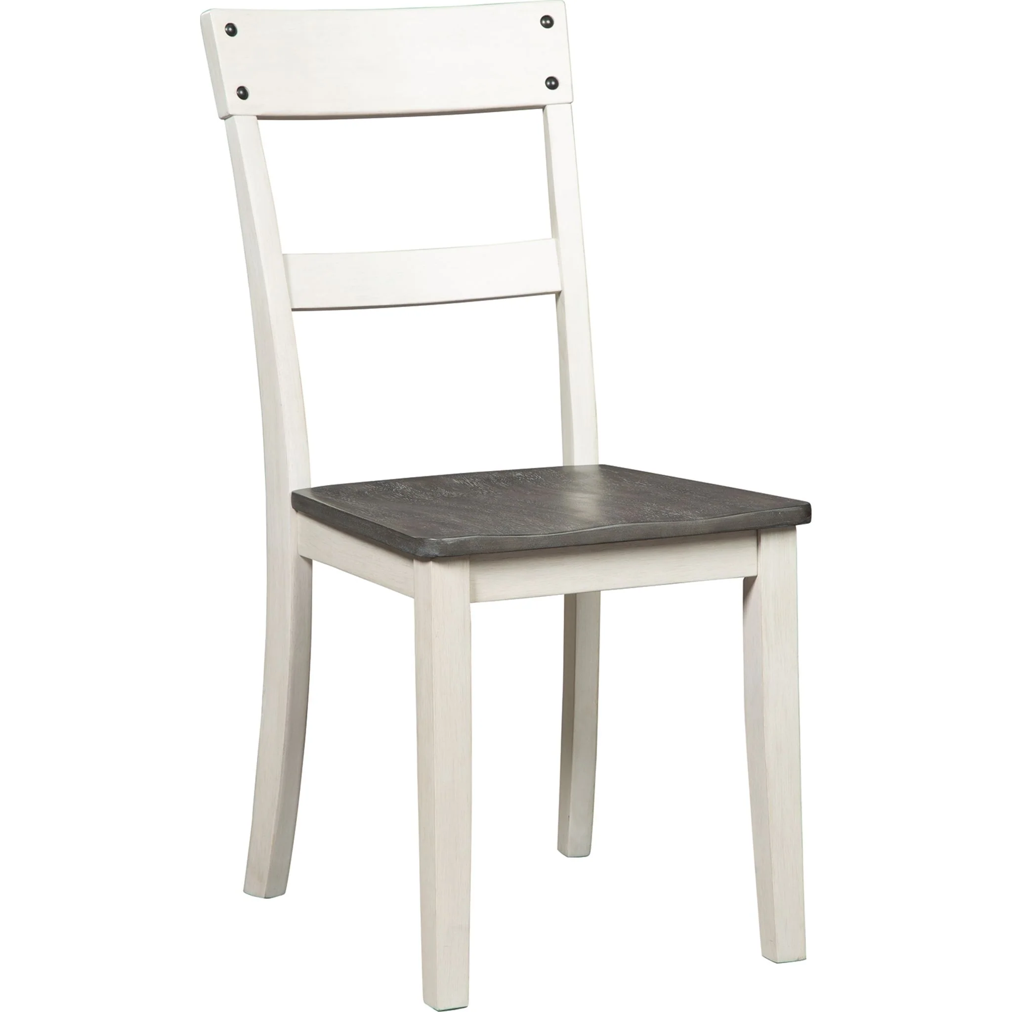 Nelling dining room chair has all the right ingredients for farmhouse-inspired style with a casual vibe. It’s beautifully crafted with a fresh white finish and a dark brown wood tone for gently weathered charm. Inset nail head accents add an industrial element.