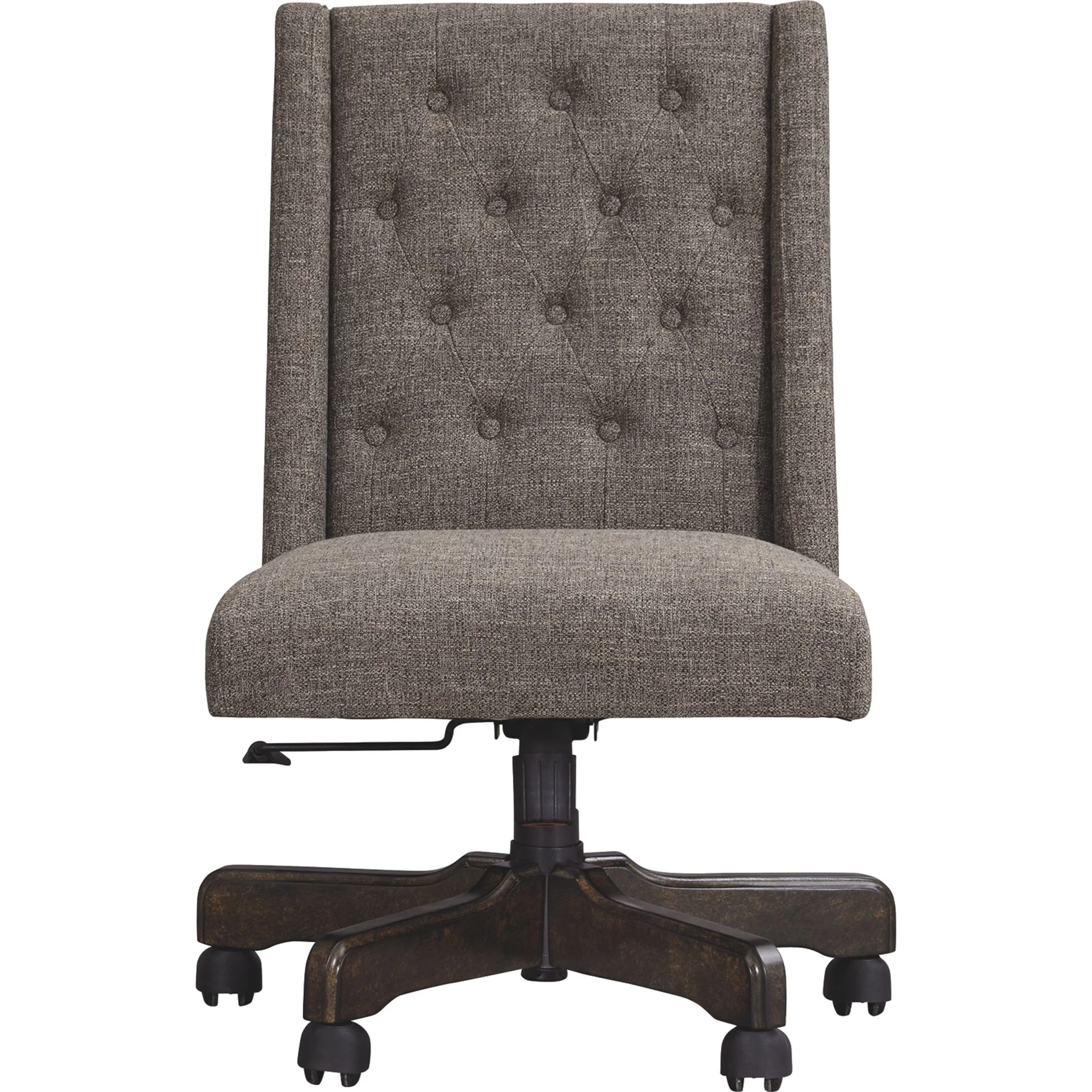 You deserve a touch of indulgence—especially when you’re hard at work. That’s what makes this upholstered swivel desk chair so alluring. Covered in a textured graphite fabric with button tufting and wingback flair, it’s a desk chair that makes work look a lot more pleasurable.